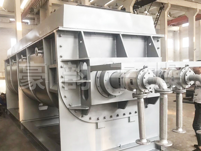 此次干燥物料為石膏粉,型號為KJG-87,傳熱面積為87㎡,共有2根軸;熱源采用飽和蒸汽,可將含水量為20%的物料干燥至5%,且每小時的處理量為50…